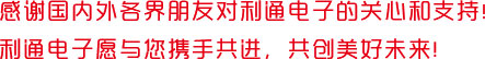 我相信,通過(guò)利通新網(wǎng)站這一平臺(tái),能夠進(jìn)一步加深廣大新老客戶對(duì)利通的了解和信任,能夠進(jìn)一步增進(jìn)新老合作伙伴友好關(guān)系的發(fā)展,能夠促進(jìn)利通電子實(shí)現(xiàn)“創(chuàng)新創(chuàng)優(yōu)服務(wù)社會(huì),增收增效回報(bào)股東”的企業(yè)愿景!